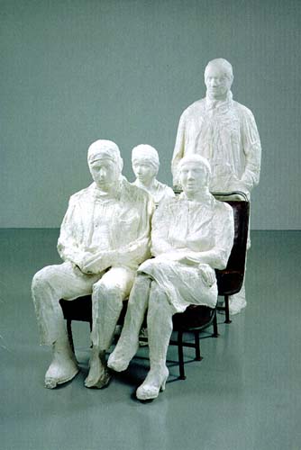 With cans of beer in hand, he laid the wet bandages across my chest; in a few weeks they will be replaced with real bandages. I could feel the cool plaster molding to me, but slowly, it grew stiff, and I could no longer feel his hands smoothing the edges of each strip down, just pressure on top of the carapace that had become my chest. I wondered if this is how I will feel after I recover, because the operation comes with permanent loss of nerve sensation in my chest.